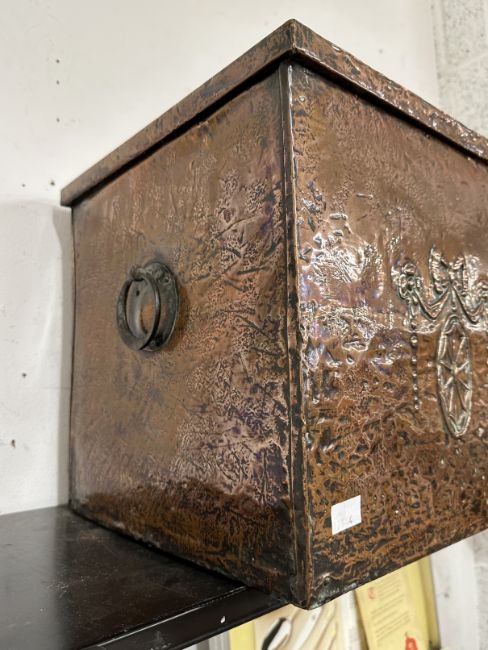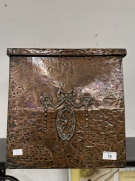 Arts & Crafts: Beaten copper coal box. 14ins. x 14ins.
