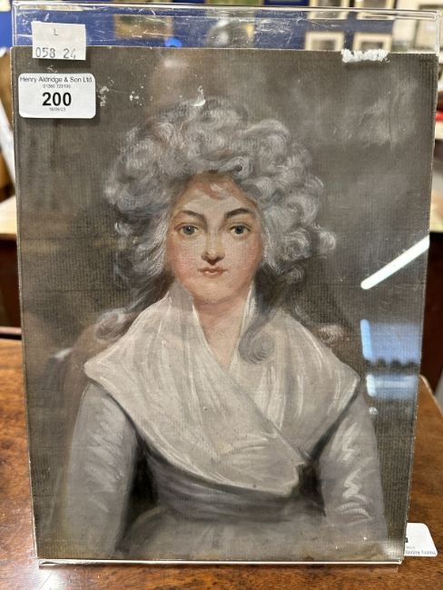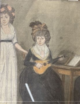 19th cent. H.D. Hamilton (circle of): Watercolour Regency Young Woman on card, unsigned. 11ins. x 8½ins. Colour sketch on reverse Two Regency Ladies One With Musical Instruments.