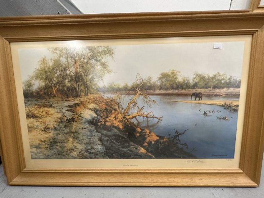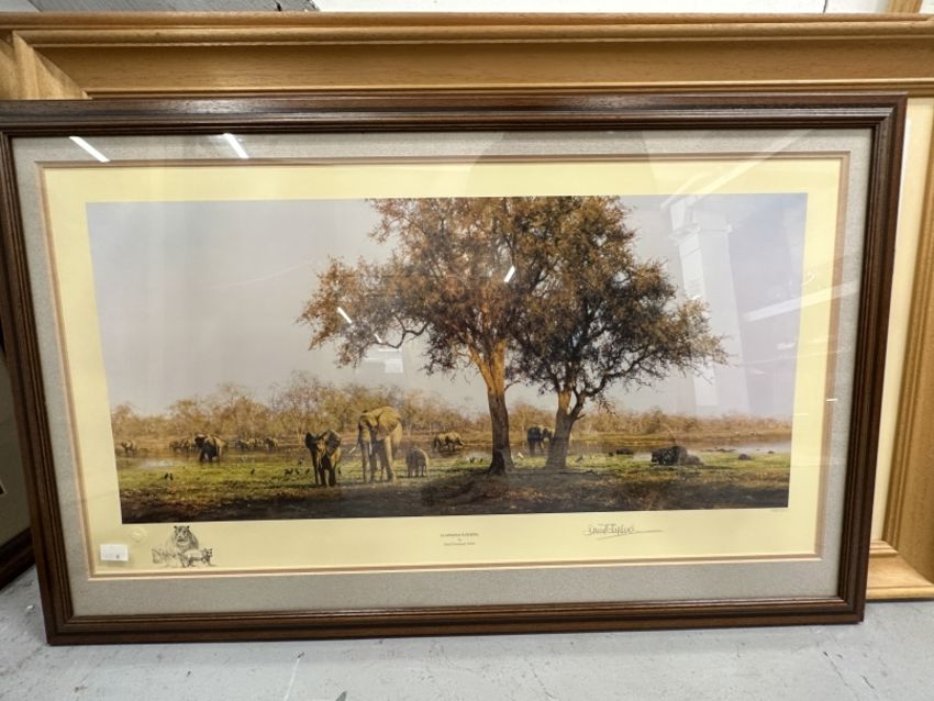 David Shepherd Signed Limited Edition Prints: Luangwa Evening 485/1500. 28ins. x 15ins; Evening of The Elephant 525/850. 18ins. x 32ins; Elephants and Egrets 503/1300. (3)