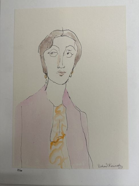 Limited Edition Prints & Illustrations: Set of four hand coloured lithographs of Virginia Woolf by Richard Kennedy (23/100) - Whittington Press 1975, 15ins. x 20ins. Castell Carreg, Cennen - wood engraving by Hilary Paynter (49/100). Four Ways to Kiss - engraving by Hugh Dunford Wood. Eastcombe - wood engraving by Carolyn Trant (33/100). Pelargonium hystrix - hand coloured copper etching (6/50) by Gillian Condy (Botanical artist), (c/f Strauss & Co, Johannesburg, 7th June 2021, Lot 128). Catalogue of the Rudimentary Series (Prospectus) containing one of the colour plates from the book (Casa Loredan, Venice). Lion and Unicorn Press, 1984. British Camp, Malvern Hills by Lorna Rankin - from an original painting. Set of twelve colour reproduction prints of horse-drawn transport (Georgian era). Plus six miscellaneous prints.