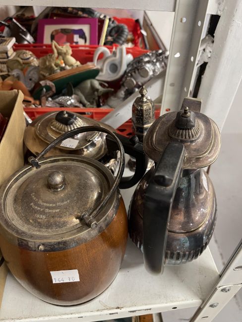 Plated Ware: Plated cutlery including boxed sets, teapots, coffee pot, biscuit barrel, gravy boat, etc. A large quantity.