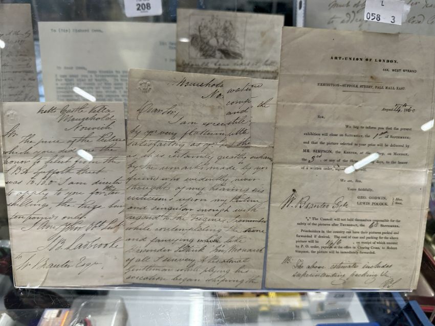 Autograph/Letters: Alexander Nasmyth to Sir Richard Owen thanking him for the gift of python teeth, with transcript. Plus a letter from Sir Francis Grant to Messrs. Graves asking for a letter to be forwarded to Mr Ryal, letters and transcripts from John B. Ladbrooke.