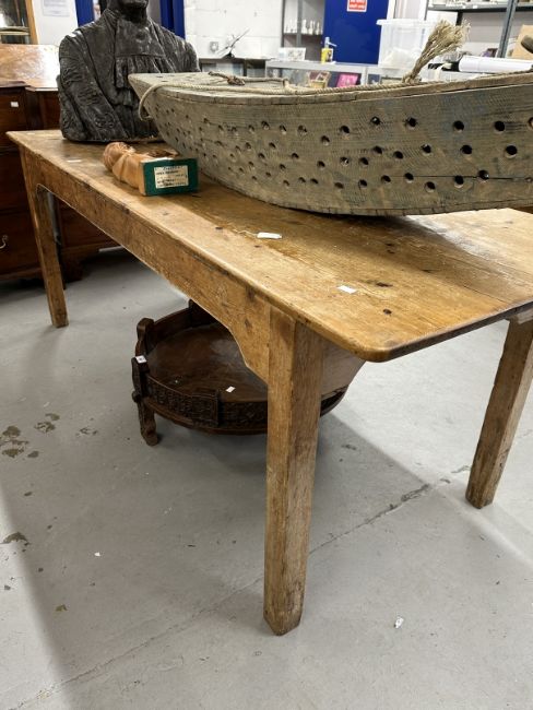 Late 19th cent. Pine refectory style kitchen table.