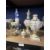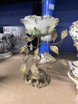 19th cent. Porcelain Rococo vases with covers polychrome floral decoration, gilt and yellow embellished on square bases A/F, cylindrical vase blue and floral decoration A/F, broken top plus gilt metal and porcelain flower dish.