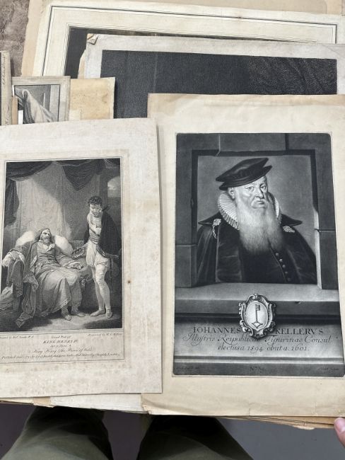 Art & Prints: Large selection of 18th/19th century prints and bookplates. (Approx. 50)