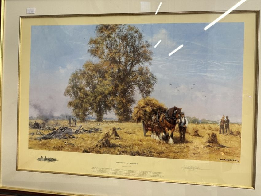 David Shepherd Limited Edition Prints: Life Goes on September 1940. 26ins. x 18ins. Shoeing Time. 11ins. x 17ins. Shelties. 17ins. x 11ins. Plus one other print of elephants. (4)
