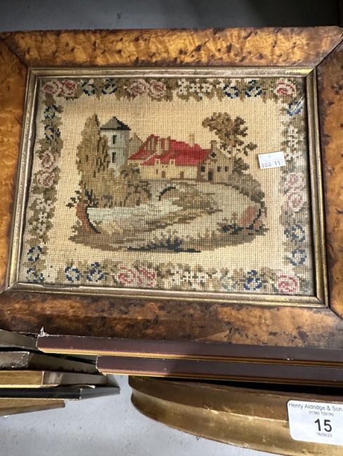 Prints, Watercolours & Woolwork: Large collection of 19th and 20th century items, framed and glazed.(15)