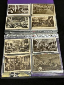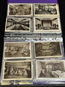 CUNARD/R.M.S. AQUITANIA: Archive collection of postcards, onboard photographs and ephemera relating to the Aquitania. Approximately 54 cards. Plus additional shipboard photographs.