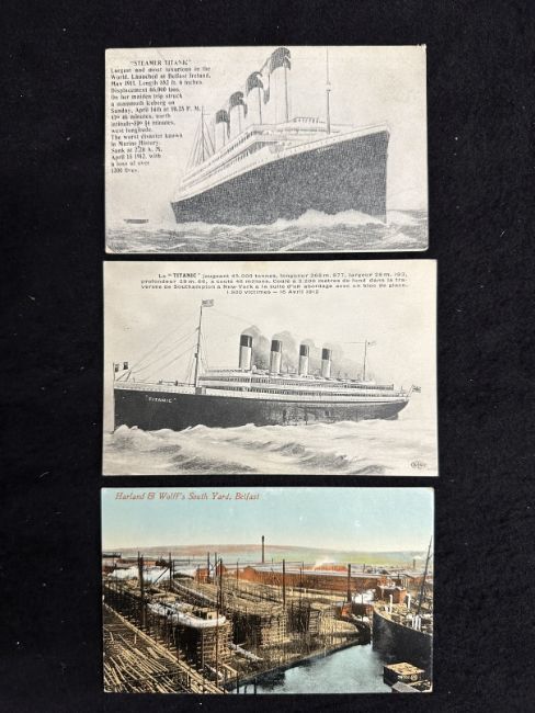 R.M.S. TITANIC: Period Titanic cards all bearing contemporary related messages to the Titanic on the reverse. (3)