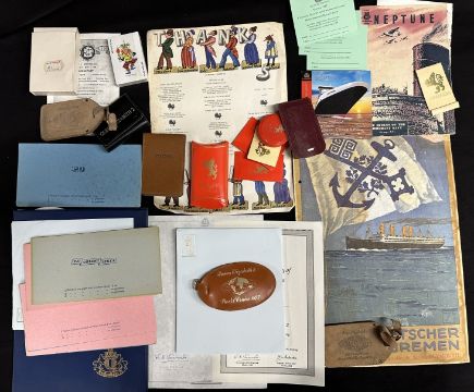 OCEAN LINER: Nordeutscher Lloyd Bremen Orlando Davis agents poster. 11ins. x 16ins. Plus a mixed lot of vintage liner memorabilia.