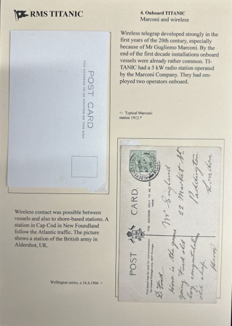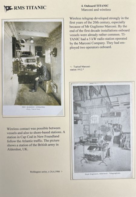 R.M.S. TITANIC/OCEAN LINER: Unusual coloured photograph taken on the Franconia in 1911 of a Marconi operator plus a photograph of the Royal Engineers Telegraphists at Aldershot.