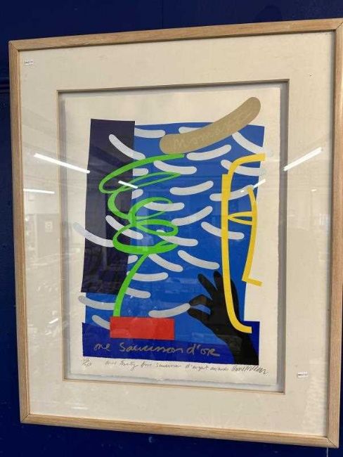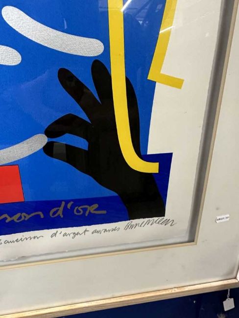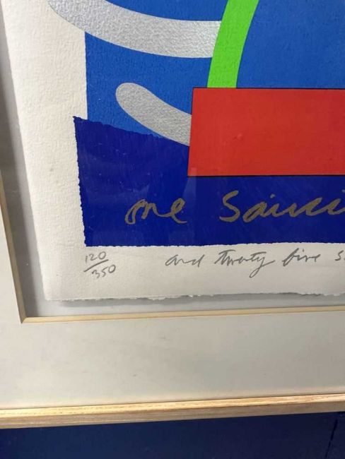 Bruce McLean (1944) Scotland, screen print limited edition 120/350. Commissioned by Momart, C.2000 "One Saucisson d'or and Twenty Five Saucisson d'Argent awards". Signed & numbered in pencil beneath. 29½ins. x 21½ins. Framed and glazed. 42ins. x 34ins.