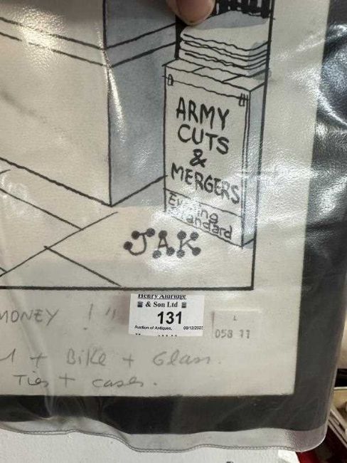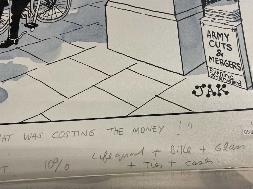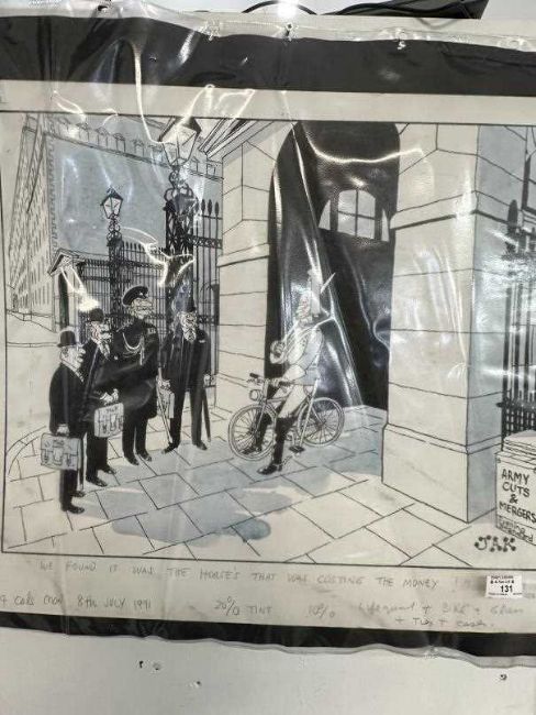 Cartoonist at the Evening Standard 'We found it was the horses that was costing the money' 8th July 1997. Black ink and pale blue colourwash. 23ins. x 20ins.
