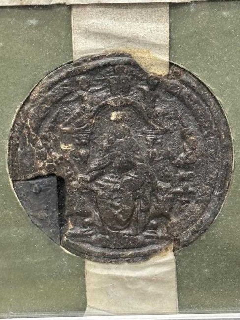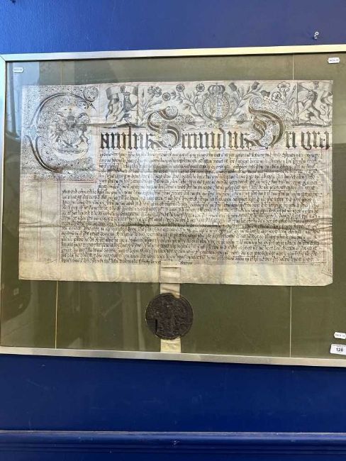 Charles II illustrated Deed of Recovery of Lands belonging to the Clare family referring to property in Twycroft/Twycross Leicestershire, with partially complete seal.