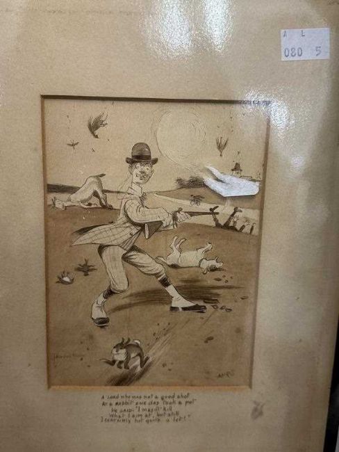 Pen and ink 'The Shoot', signed lower left, unframed. 7ins. x 5ins.