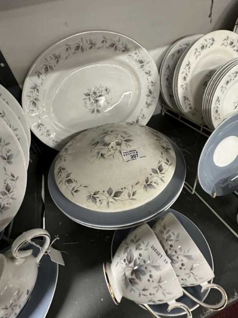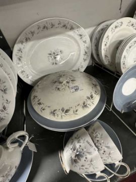 Ridgway Graywood dinner/tea set comprising six salad, six tea, six dinner plates, two vegetable (1 A/F), gravy boat, an oval, six teacups and six saucers.