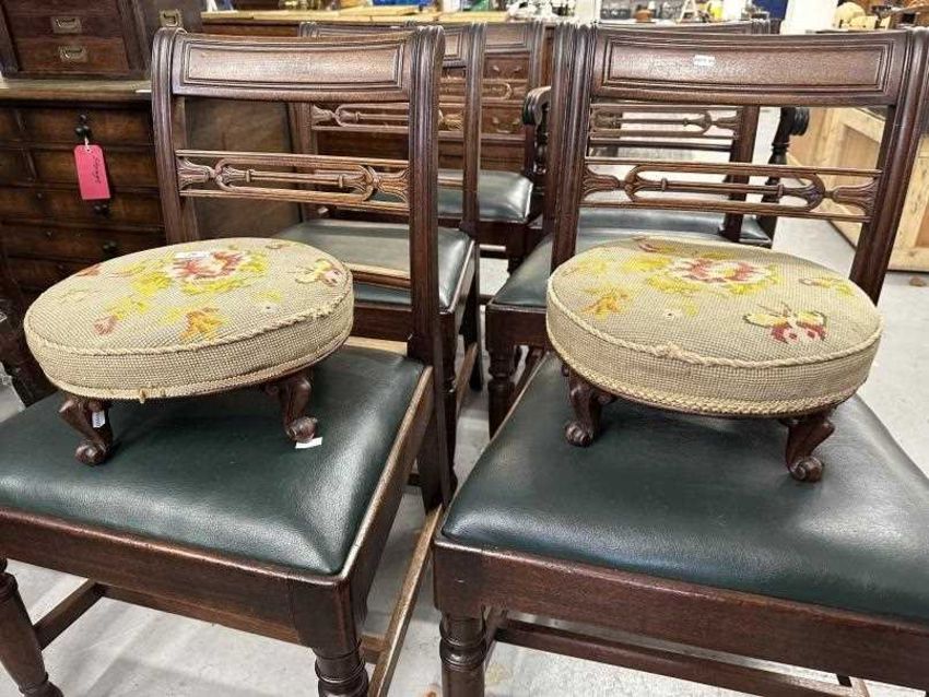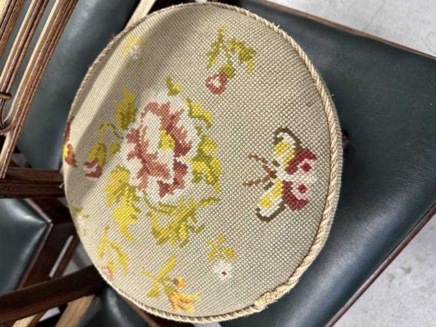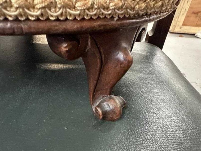 19th cent. Rosewood woolwork circular footstools with cabriole shaped supports, a pair. Dia. 13ins.