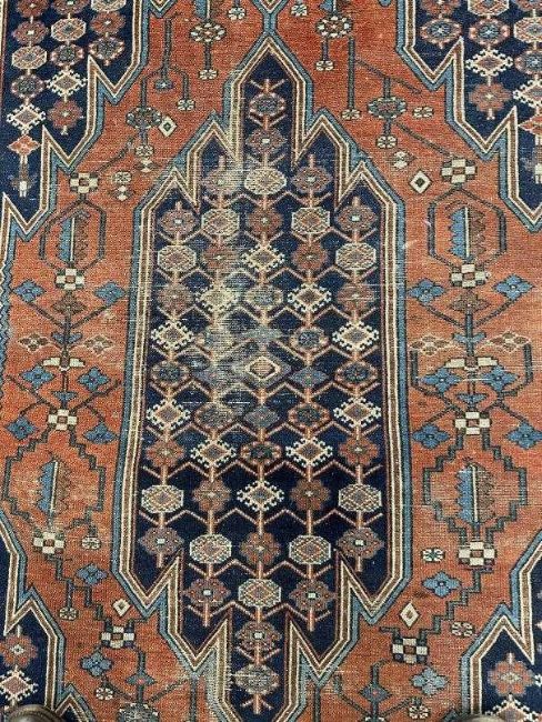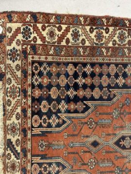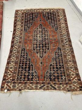 19th cent. Mazlaghan rug from West Iran, madder red field of stylised plants, centred by a serrated medallion and enclosed by triple narrow borders. 50ins. x 78¾ins.