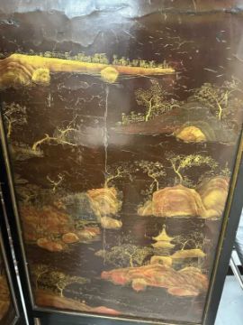 19th cent. Chinoiserie two-panelled gilt and lacquer screen.