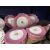 Dessert service, unmarked, pink border, gilt and scallop edged, central floral display, each piece with different pattern, comprises centre bowl on a round stem (damaged), plates x 16 (1 A/F), heart shaped plates x 3 (A/F), serving dishes x 2 with ribbon ends. Plus a fruit service with fruit bowls x 3 and plates x 6, light pink border, gilt edged, central printed fruit designs.