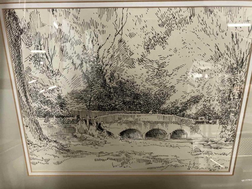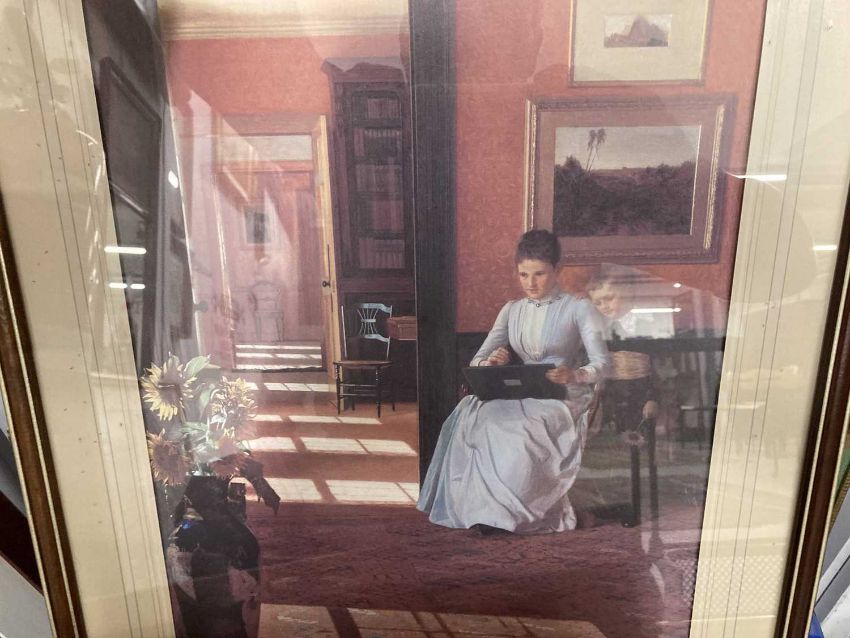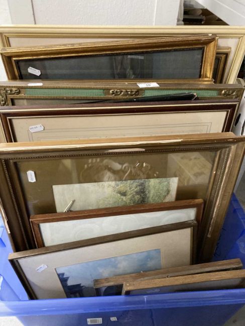 Collection of framed prints, all under glass and framed, including one pencil drawing and one needlepoint, various sizes. (Approx.18)