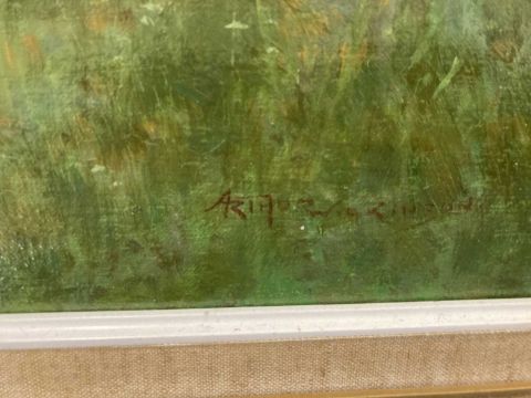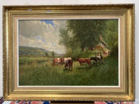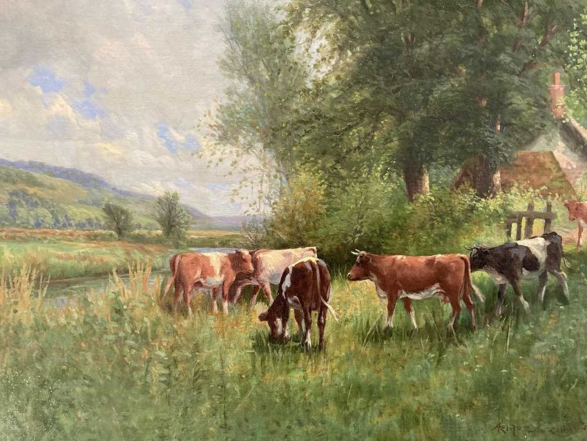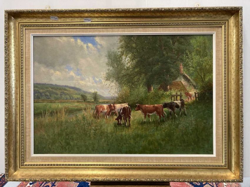 Oil on canvas 'By The Riverside, Wherwell, Hampshire', signed lower right and verso title indistinctly.