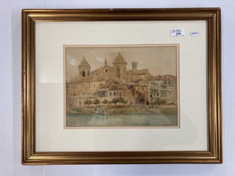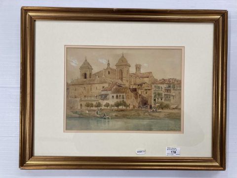 Evelyn Jane Whyley a Mediterranea coastline with foreground figures and buildings commanding the overall composition.