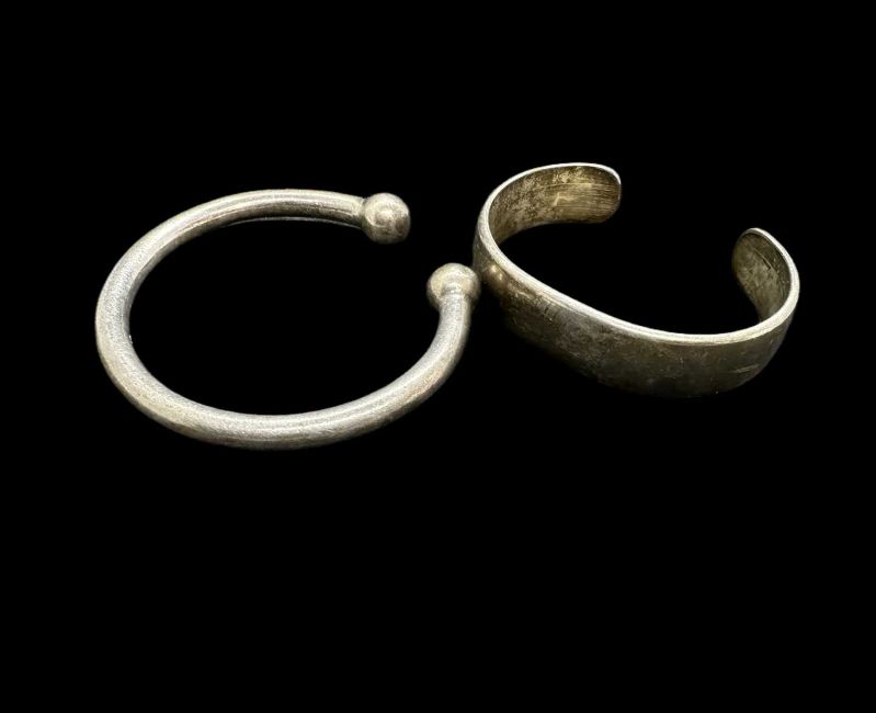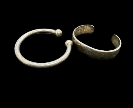 Silver torc bracelet, Birmingham 1976, 5.6g. Plus a white metal bracelet marked Chouski.