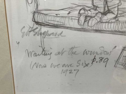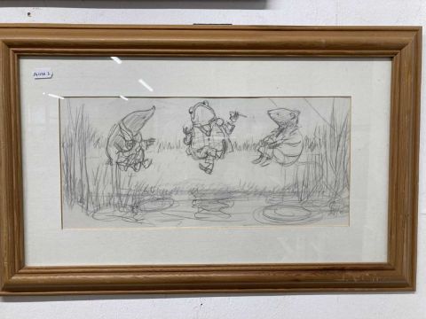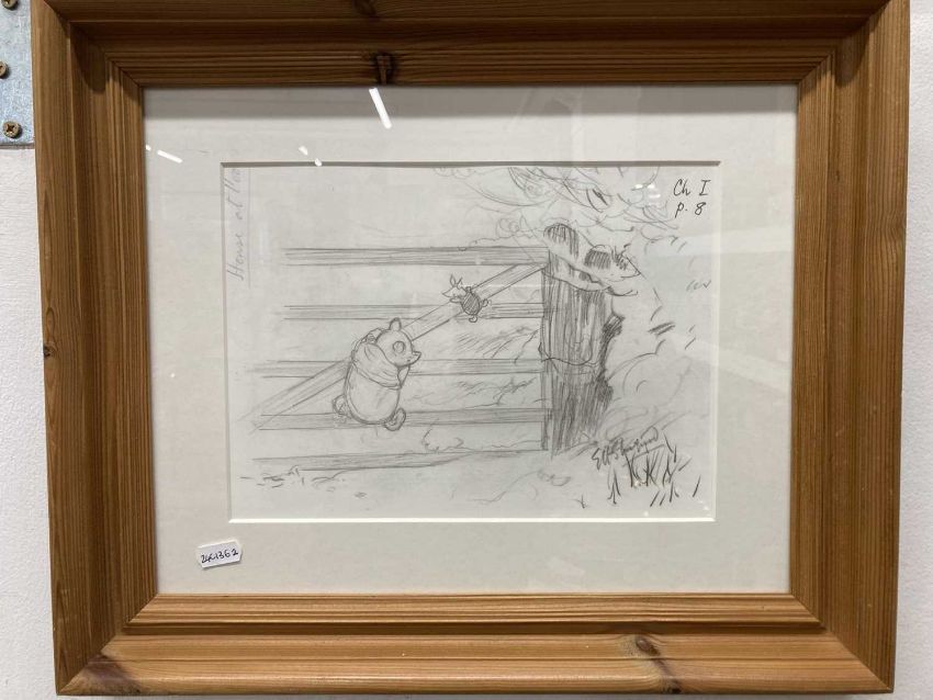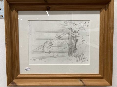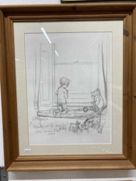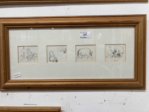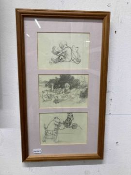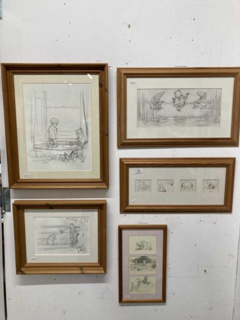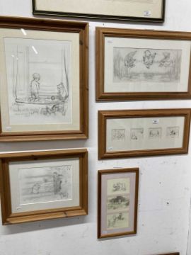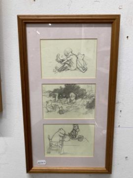 Framed prints all framed under glass, Christopher Robin, Pooh, Eeyore, Rabbit, Roo. (5)