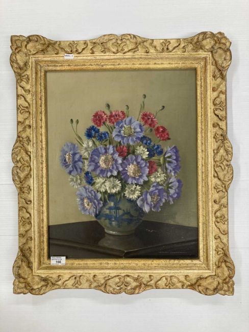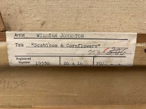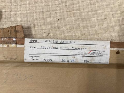 William Johnson (Scottish) 1893-1974: Scabious and Cornflowers still life, signed bottom right. 15ins. x 20ins.