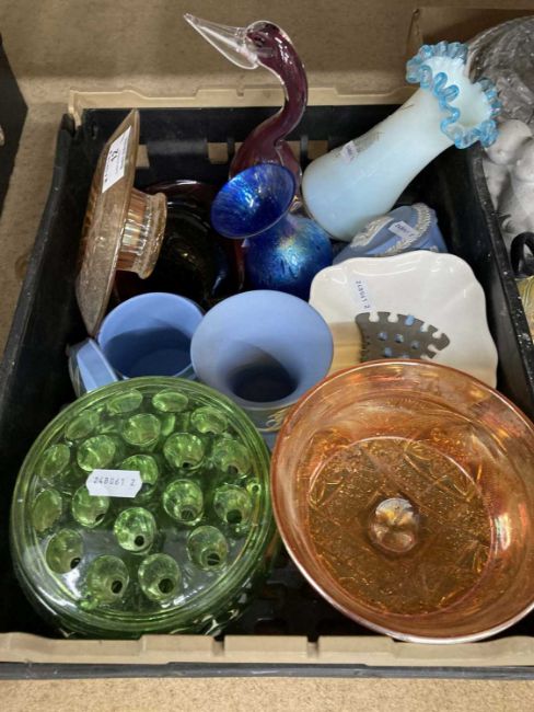 1950s Jasperware, Carnival glass, powder compacts, silver cross, etc.