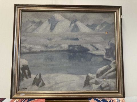 Oil on canvas polar scene signed lower left, framed. 23ins. x 20ins.