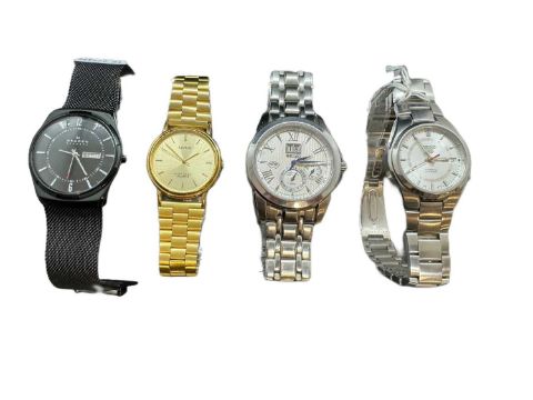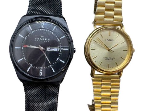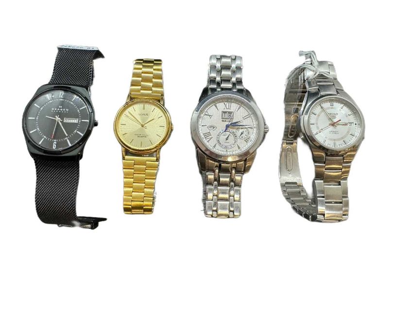 Watches: Man's Seiko S Automatic 21 jewel wristwatch, stainless steel case and strap/ 3.7cm including crown. Seiko kinetic perpetual wristwatch 4.5cm. Skagen black wristwatch, 4.2cm plus a Lorus Quartz wristwatch.