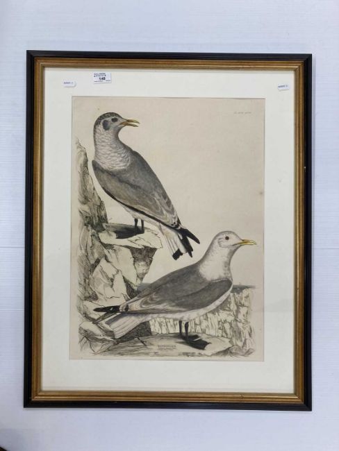 Coloured etching of Kittiwakes in a natural setting, 17ins. x 23ins. and a Grey Lapwing, 22ins. x 16ins. (2)