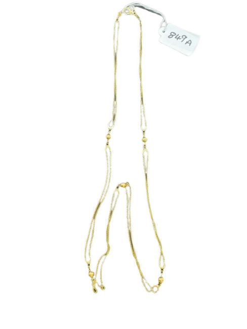 Jewellery: 18ct. yellow gold double necklace of ball and curb-link design. 88cm. 21.4g