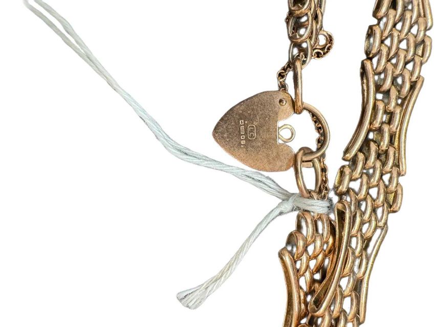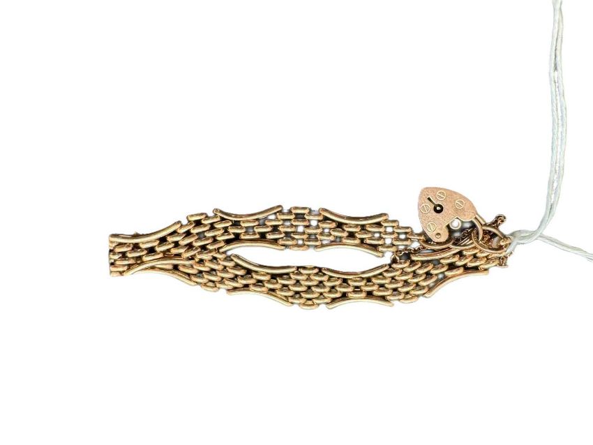 Jewellery: 9ct. Rose gold chain link bracelet, London 1970, with heart-shaped clasp and safety chain. 20.5cm. 22.8g.