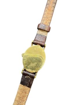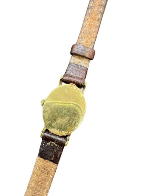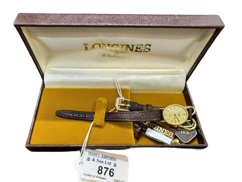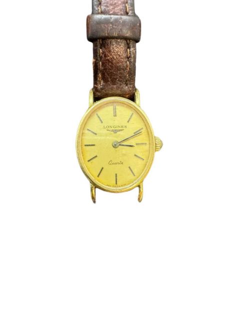 Watches: Ladies 18ct. gold quartz watch with oval dial, 2.1cm. including crown, complete with original box and tags.