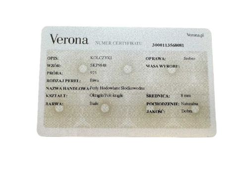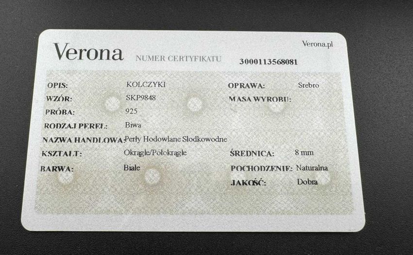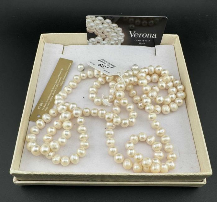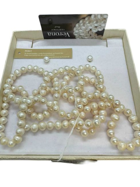 Set of freshwater pearls, 8mm, 60cm length plus pair of 8mm stud earrings. With certificate.