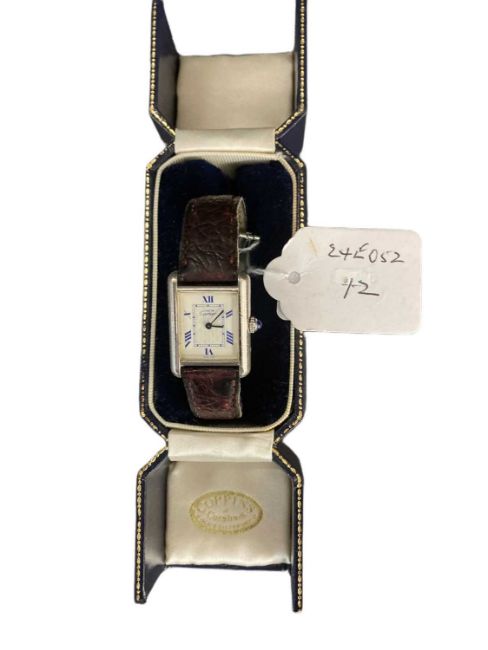 Ladies boxed cartier tank wtch marked 219802CD on a brown leather strap (original).