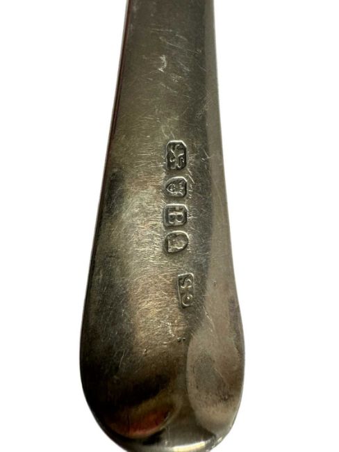 Hallmarked Silver: Georgian Silver Basting spoon, London 1797, together iwtha silver handled carving knife. Spoon 3.4 troy oz.