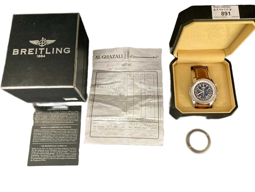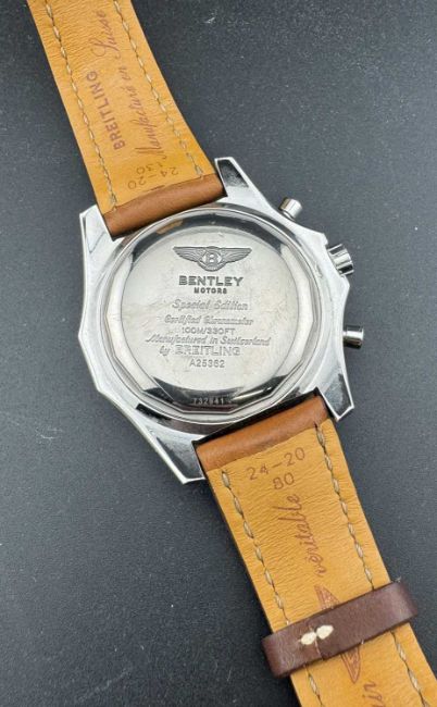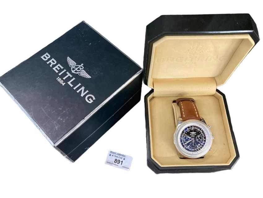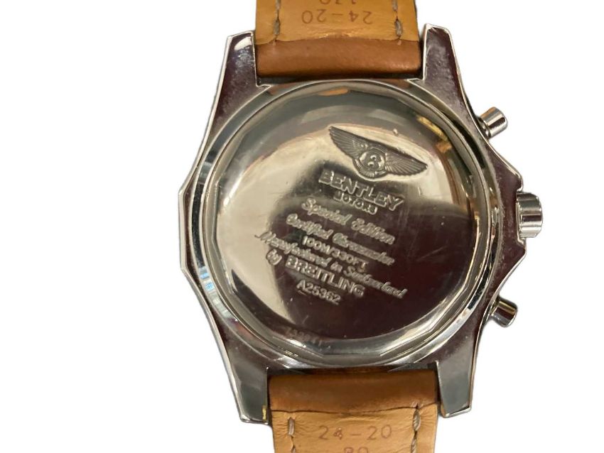 Watches: Breitling Bentley Motors Automatic with unusual tan strap, 48mm, box, outer sleeve and purchase receipt.