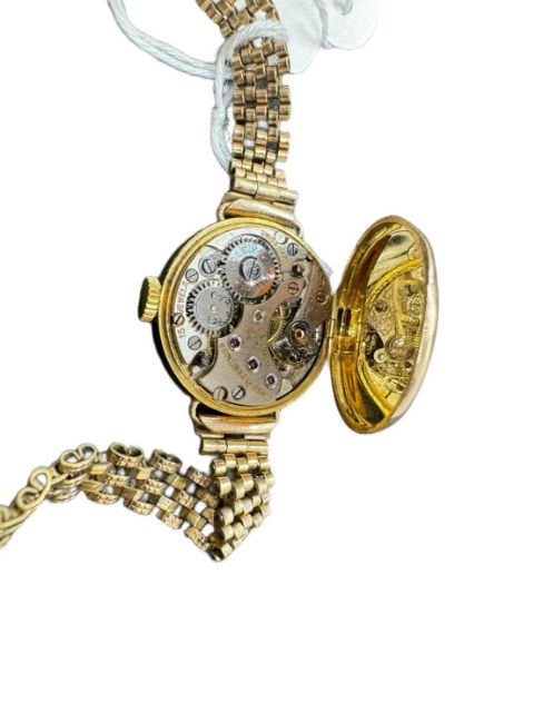 Watches: Ladies 9ct. gold Rolex wristwatch on plated strap. The dial and movement signed Rolex, The case with 9ct. marks and RWC. The head measures 2..3cm. including the crown.