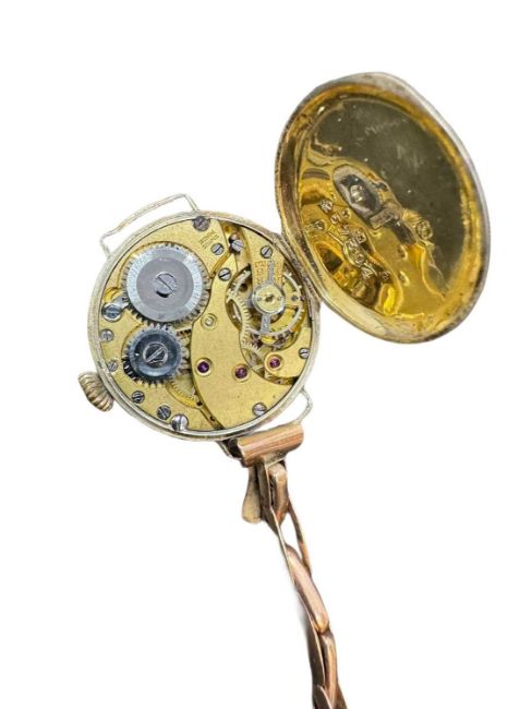 Watches: Ladies 9ct gold wristwatch on expanding gold strap, Birmingham hallmarks. Gross weight 17.1g.