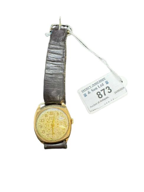 9ct gold-cased Avia wristwatch, Birmingham 1958, with 15 jewel movement, 3cm diameter including crown.