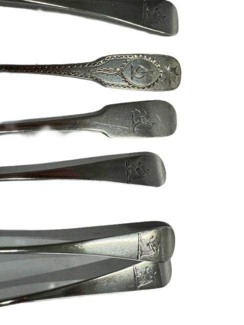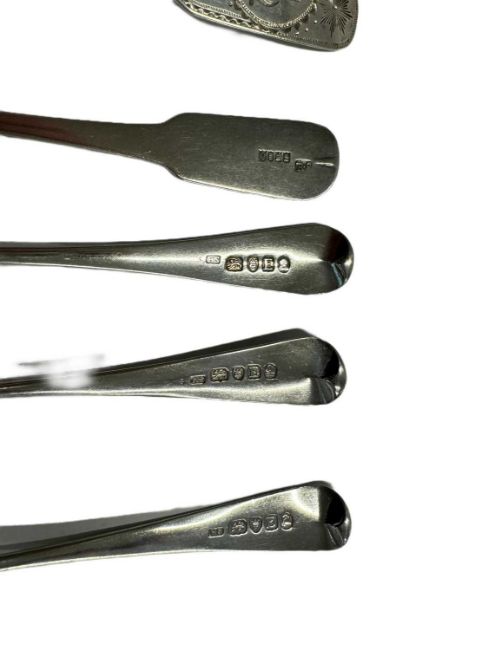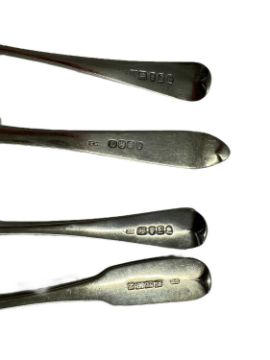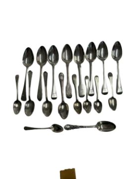 Hallmarked Silver: Three Georgian, Dublin hallmarked spoons, each bearing a different crest plus twelve further silver spoons of varying age and size. Total weight: 13.2 troy oz.