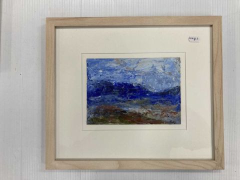 Paintings: Duncan Rory Grant 'All Our Yesterdays' mixed media on canvas. Signed Rory, lower right. 7½ins. x 4¾ins. Duncan Rory Grant 'The Blue Hills' mixed media on canvas, signed Rory, lower right. 8ins. x 5¾ins. Duncan Rory Grant, untitled mixed media dated 22 Oct. 5ins. x 7ins. (3)