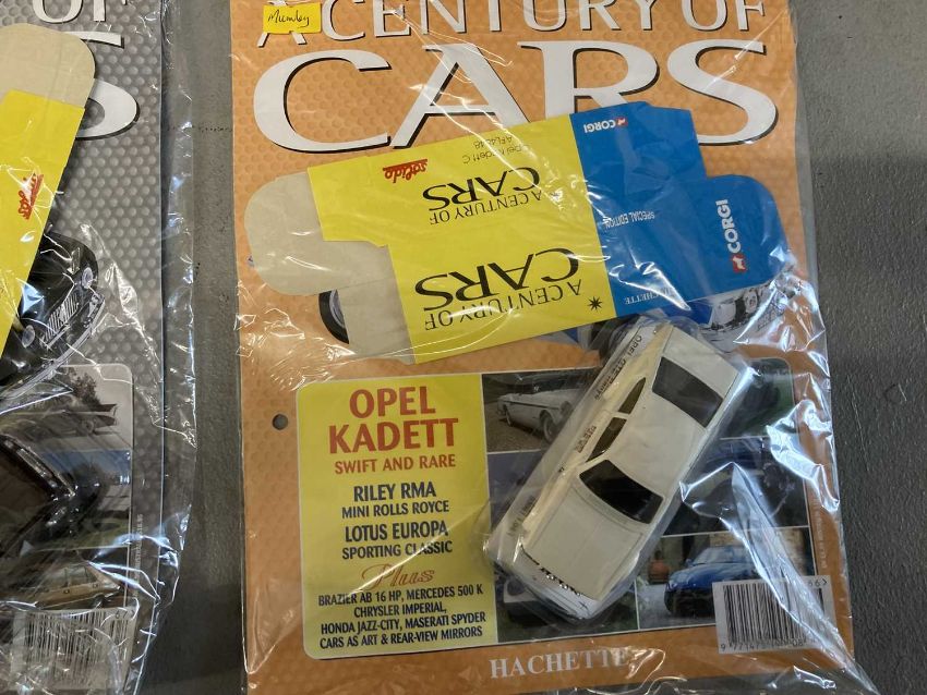 Hatchette The Century of Cars Collection, 1:43 models featuring Corgi, Solido and Norev models, there were originally 80 models made up of Corgi and Solido model diecast cars but 90 were issued in the UK. Plus three hardback A4 binders and the dividers for each, all the models come with a magazine and a box, all 90 are present and in original unopened cellophane wrapping.