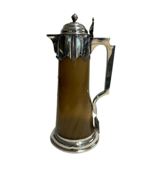 19th cent. Silver-mounted horn claret jug, London 1877, Frederic Purnell, inscribed 'Slainte Dhuitse' Good Health in Gaelic, presented by the sons of the Duke of Argyll in December 1878, also has an inscribed coat of arms.