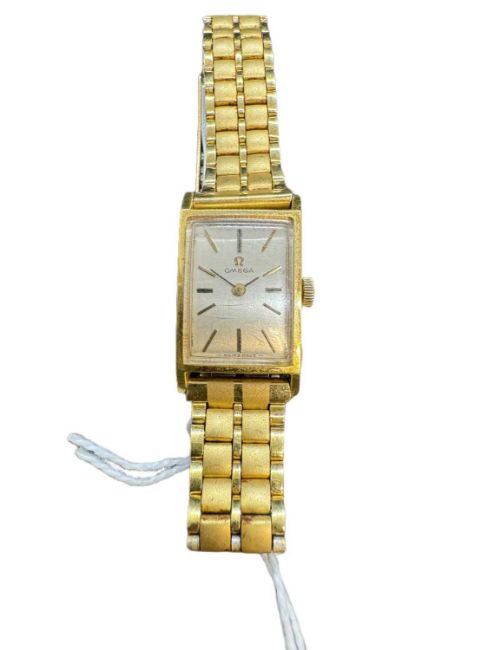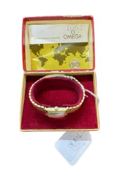 Ladies vintage mechanical Omega watch (484 movement) with gold tone brick strap. Plus a boxed gentleman's Citizen eco-drive stiletto watch.