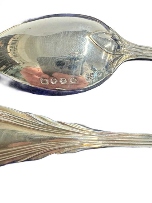 Hallmarked Silver: Victorian Christening Set, boxed, London 1887, together with another Sheffield 1921. Total 5.8 troy oz.